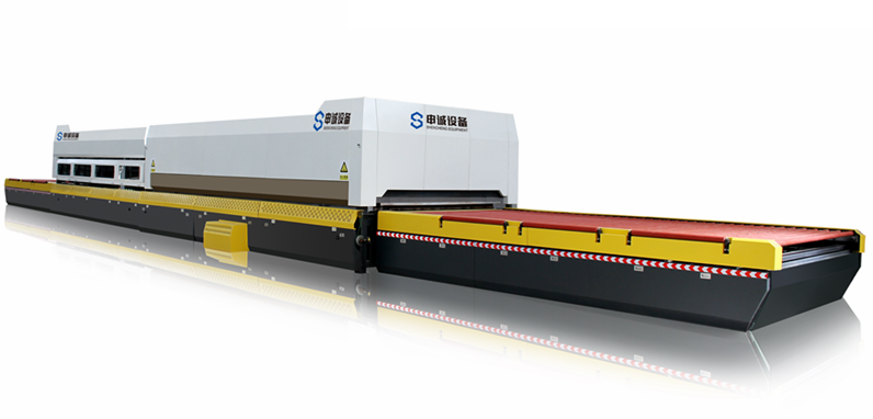 1.數倍于常規設備的爐長和風柵,可以使玻璃在單向運動中被加熱到可鋼化溫度,并被迅速鋼化、冷卻;
